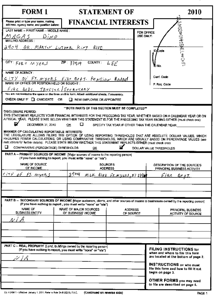 address, agency name, and position below:STATEMENT FINANCIAL INTERESTSLAST NAME FIRST NAME MIDDLE NAME :/144G4 5MAILING ADDRESS I,1,75