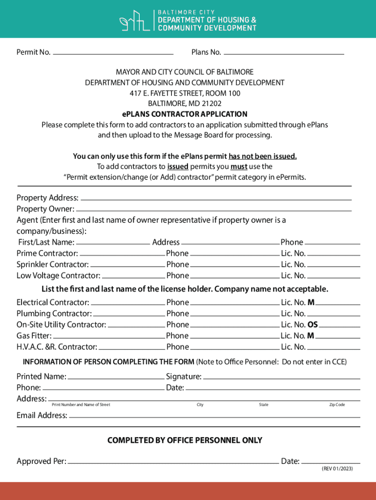 Plans Contractor Application Guidelines When an email prompts you to upload your plans, you will need to submit the plans Contractor Application (referred to in this document as the contractor form).
