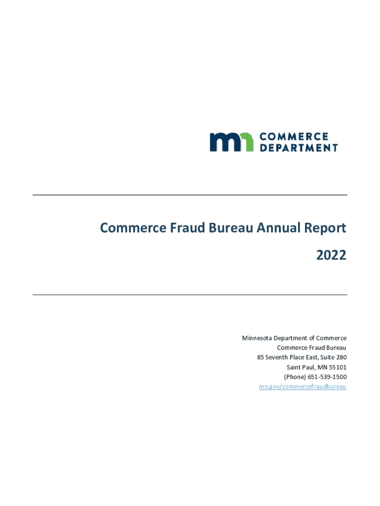Commerce Fraud Bureau Annual Report 2022Minnesota Department of Commerce Fraud Bureau 85 Seventh Place East, Suite 280 Saint Paul, MN 55101 (Phone) 6515391500 mn.gov/commercefraudbureauMinnesota Department