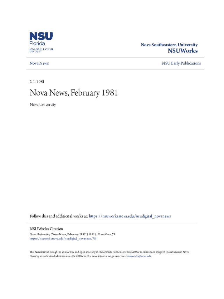 Nova Southeastern UniversityNSUWorks Nova NewsNSU Early Publications211981Nova News, February 1981 Nova UniversityFollow this and additional works at: https://nsuworks.nova.edu/nsudigital_novanews