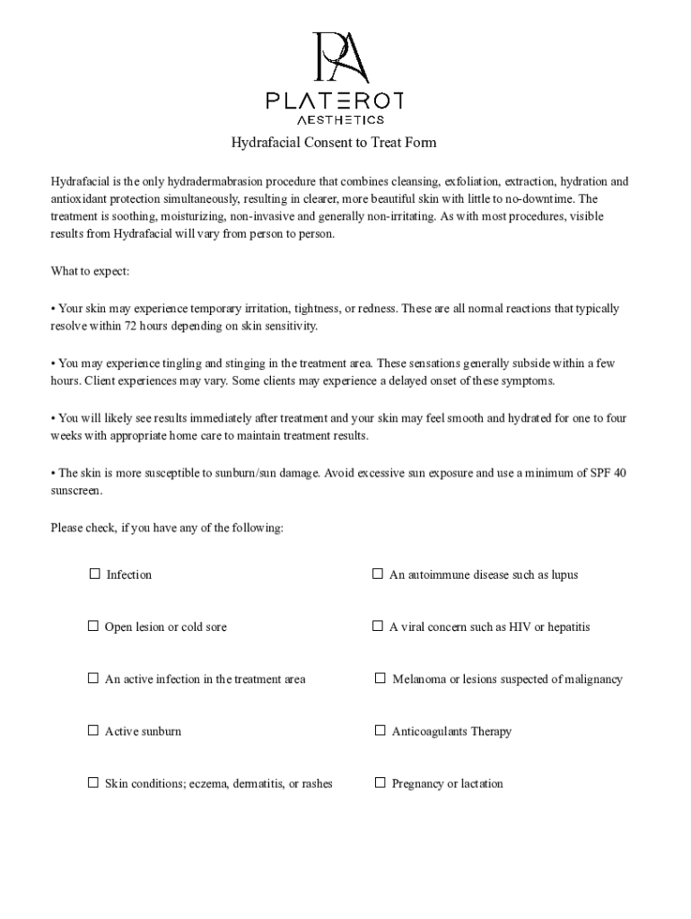 How to fill out hydrafacial consent form