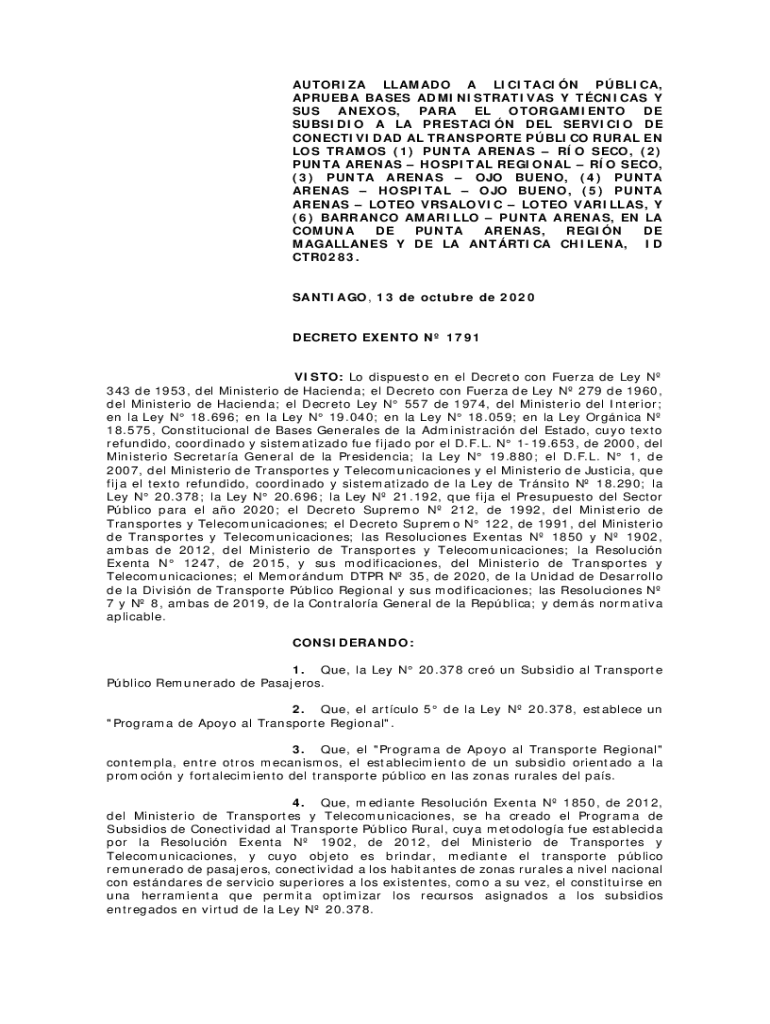 AUTORIZA LLAMADO A LICITACIN PBLICA, APRUEBA BASES ADMINISTRATIVAS Y TCNICAS Y SUS ANEXOS, PARA EL OTORGAMIENTO DE SUBSIDIO A LA PRESTACIN DEL SERVICIO DE CONECTIVIDAD AL TRANSPORTE PBLICO RURAL EN