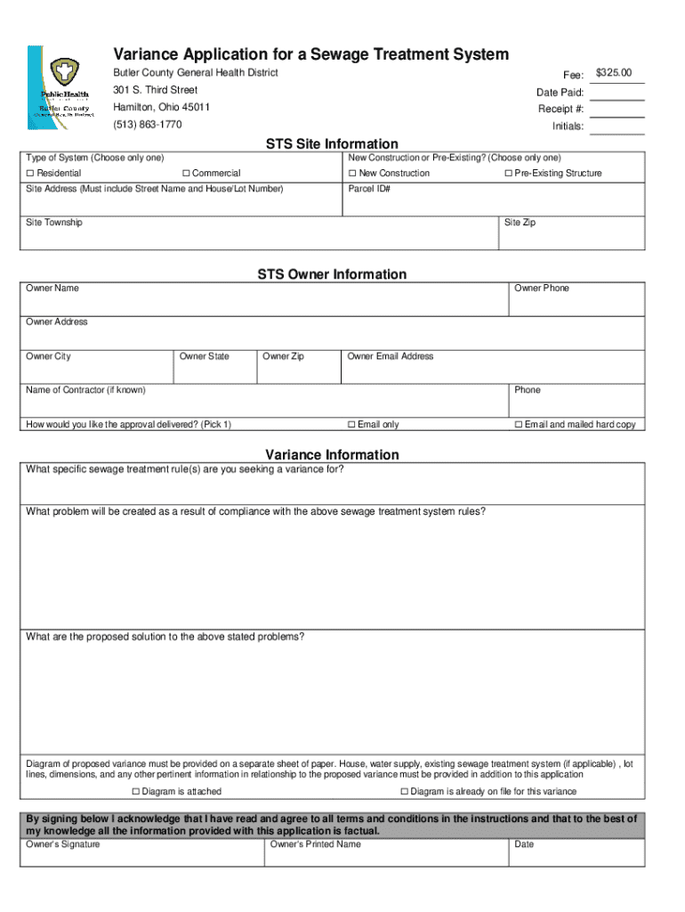 Variance Application for a Sewage Treatment System
