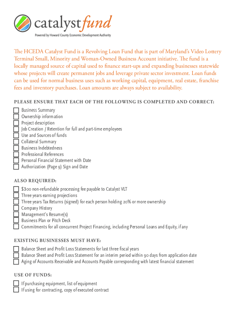 The HCEDA Catalyst Fund is a Revolving Loan Fund that is part of Marylands Video Lottery Terminal Small, Minority and WomanOwned Business Account initiative. The fund is a locally managed source of