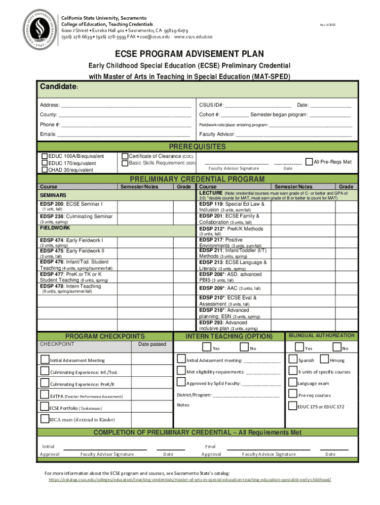 California State University, Sacramento College of Education, Teaching Credentials 6000 J Street Eureka Hall 401 Sacramento, CA 958196079 (916) 2786639 (916) 2785993 FAX coe@csus.edu www.csus.edu/coeRev.