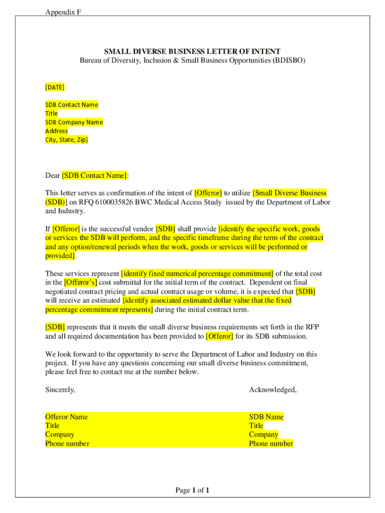 Get the free Appendix F Page 1 of 1 SMALL DIVERSE BUSINESS LETTER OF ...