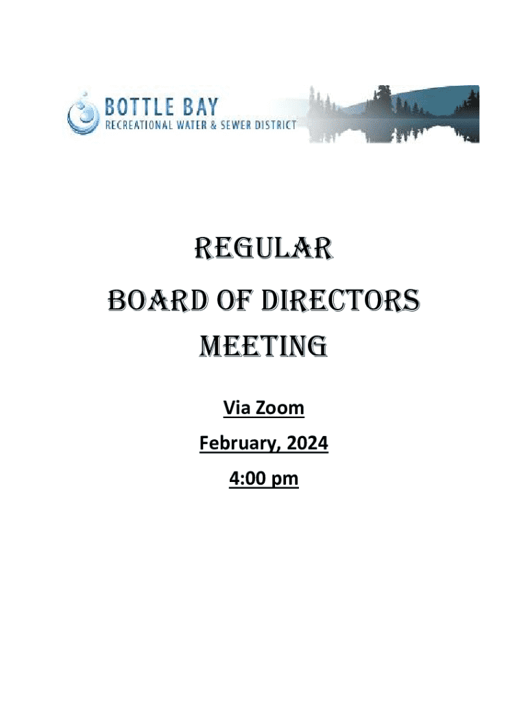 REGULAR BOARD OF DIRECTORS MEETING Via Zoom February 2024 4:00 pm Page 2 Bottle Bay Recreational Water & Sewer District P. O. Box 304, Sale, Idaho 83860 Phone: ___ MEETING AGENDA Tuesday, February