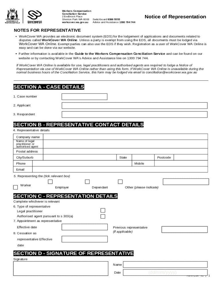Template 104 - Notice of Representation instructions