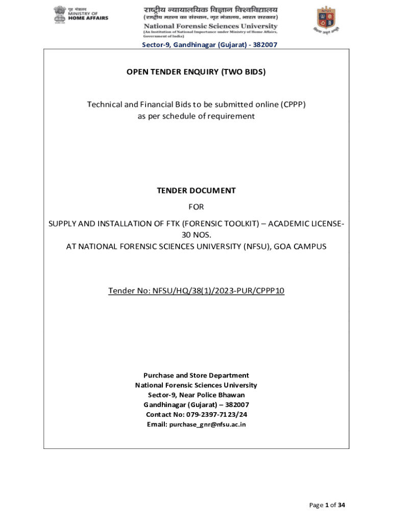 Sector9, Gandhinagar (Gujarat) 382007OPEN TENDER Inquiry (TWO BIDS)Technical and Financial Bids to be submitted online (PPP) as per schedule of requirementTENDER DOCUMENT FOR SUPPLY AND INSTALLATION