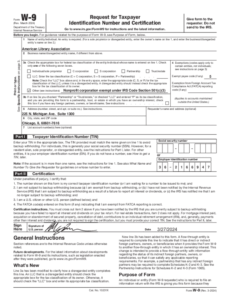 W9Request for Taxpayer Identification Number and CertificationForm (Rev. March 2024) Department of the Treasury Internal Revenue Serviceable form to the requester. Do not send to the IRS. Go to www.irs.gov/FormW9