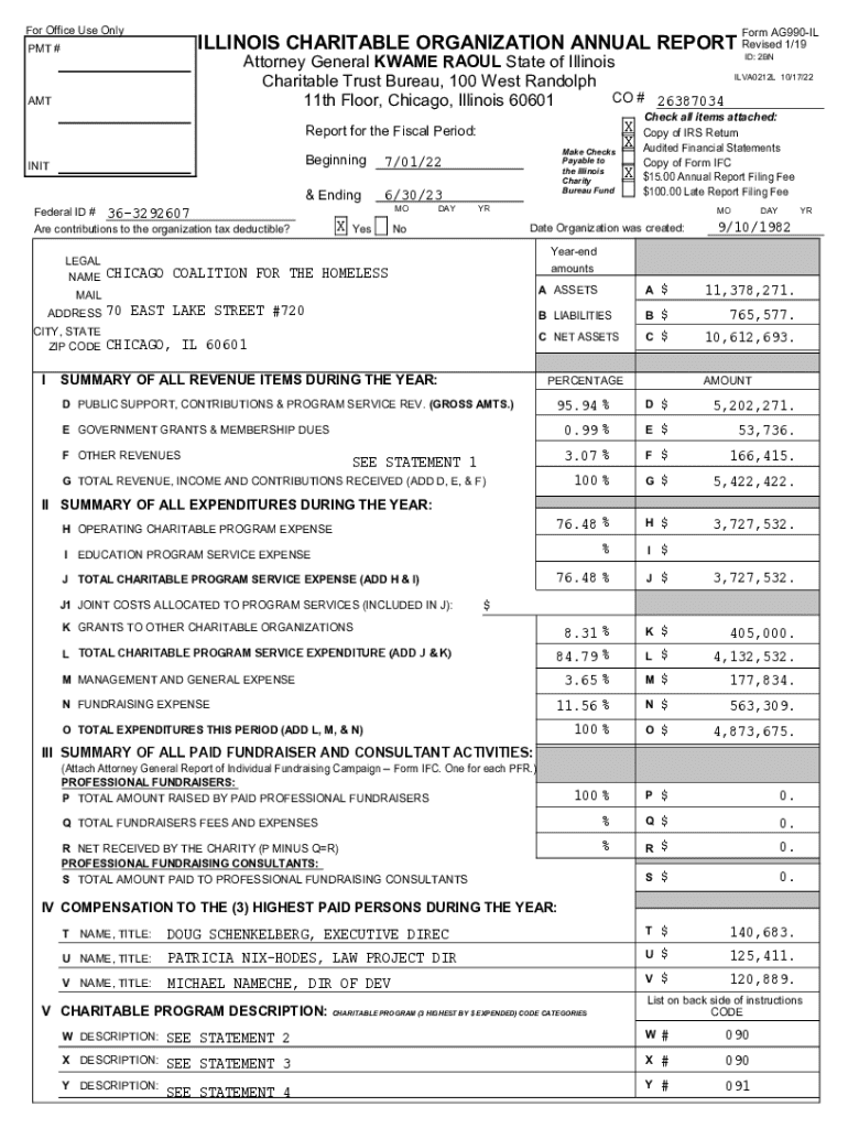 For Office Use Uniform AG990ILILLINOIS CHARITABLE ORGANIZATION ANNUAL REPORT Revised 1/19PMT #Attorney General KWAME RAOUL State of Illinois Charitable Trust Bureau, 100 West Randolph CO # 26387034