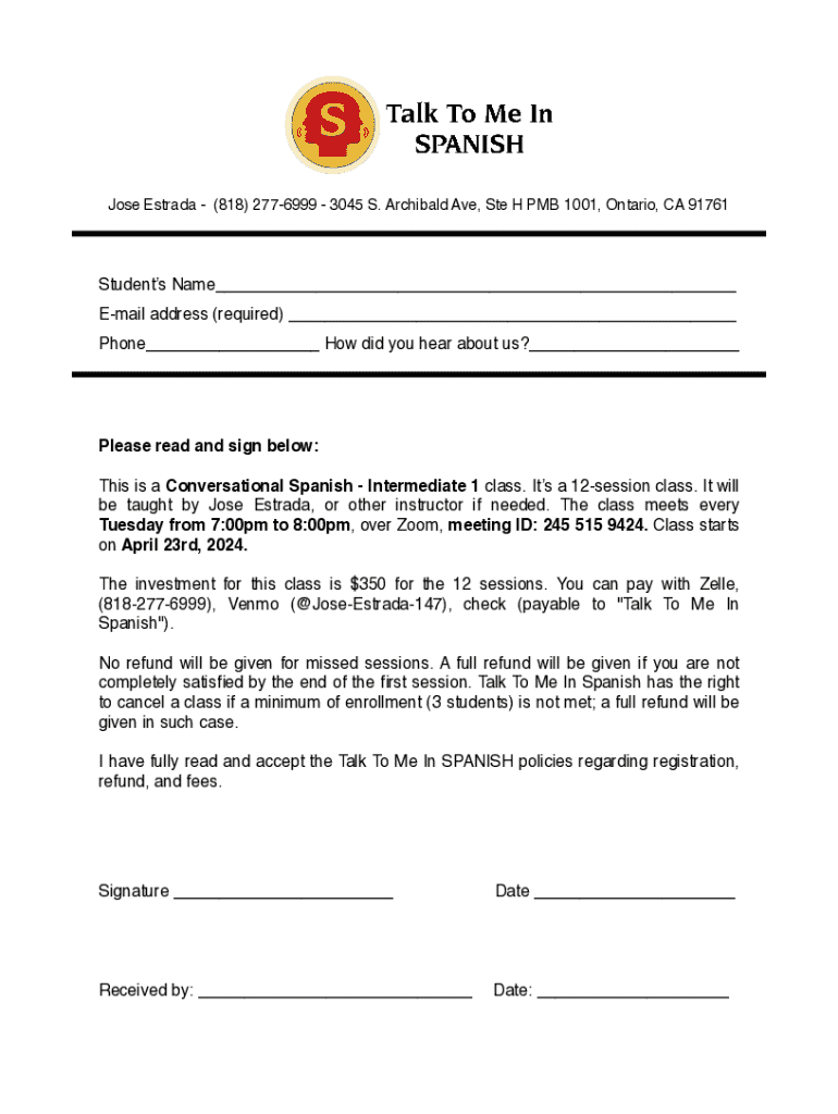 Jose Estrada (818) 2776999 3045 S. Archibald Ave, Ste H PMB 1001, Ontario, CA 91761Students Name___ Email address (required) ___ Phone___ How did you hear about us?___Please read and sign below: This