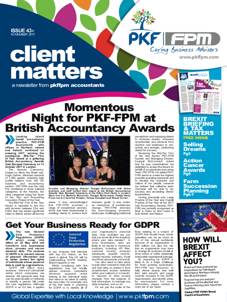 issue 43NOVEMBER 2017www.pkffpm.comER 2017 No: 04 // NOVEMBs Brexit Opportunitie tax And Risks NOVEMBER 2017a newsletter from pkffpm accountantsMomentous Night for PKFFPM at British Accountancy Awards