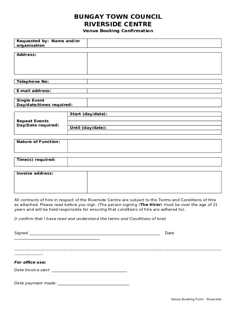 What is BUNGAY TOWN COUNCIL THE RIVERSIDE CENTRE Form?