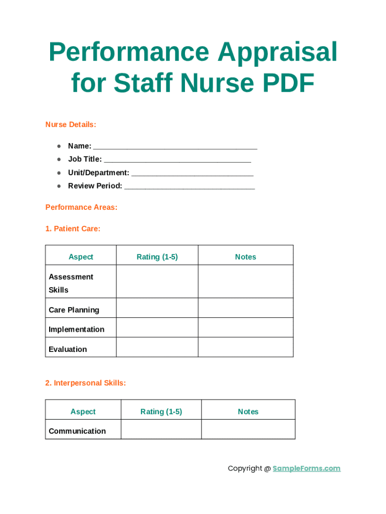 What is Perance Appraisal for Staff Nurse PDF Form?