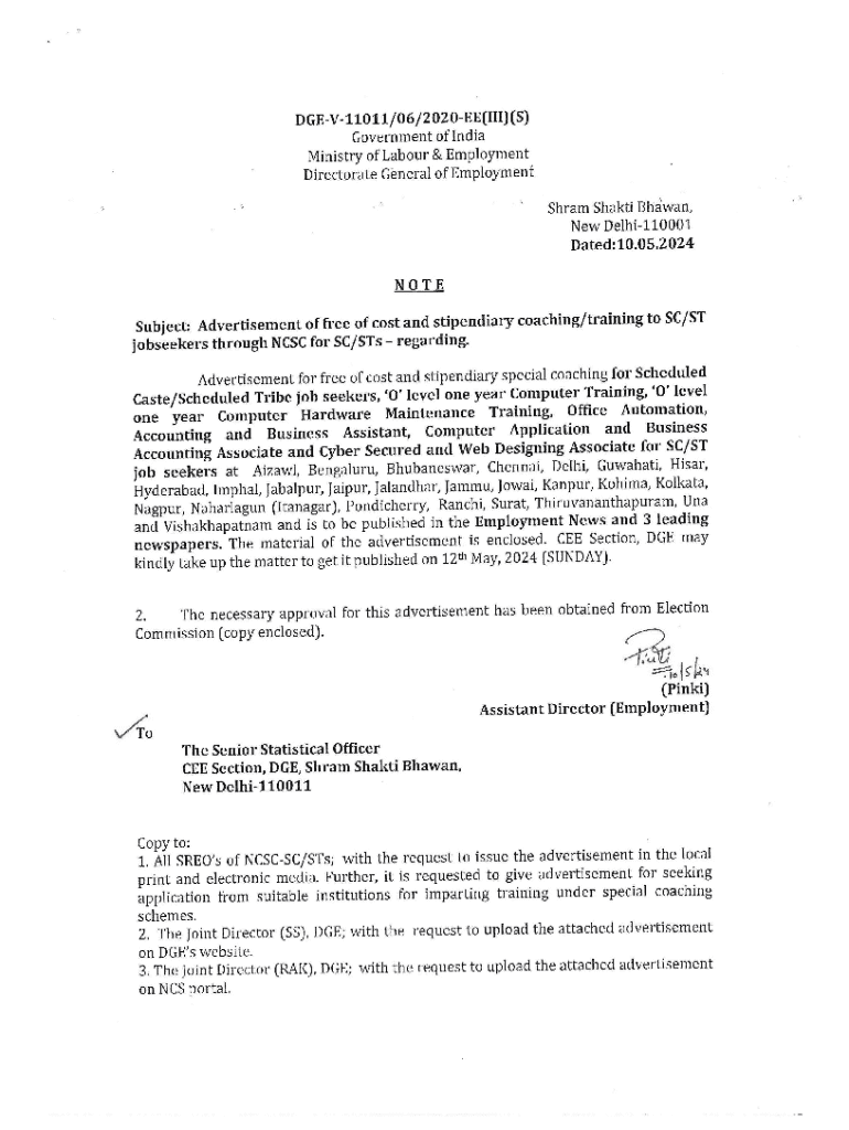 Get the free NATIONAL CAREER SERVICE CENTRE FOR SC/ST