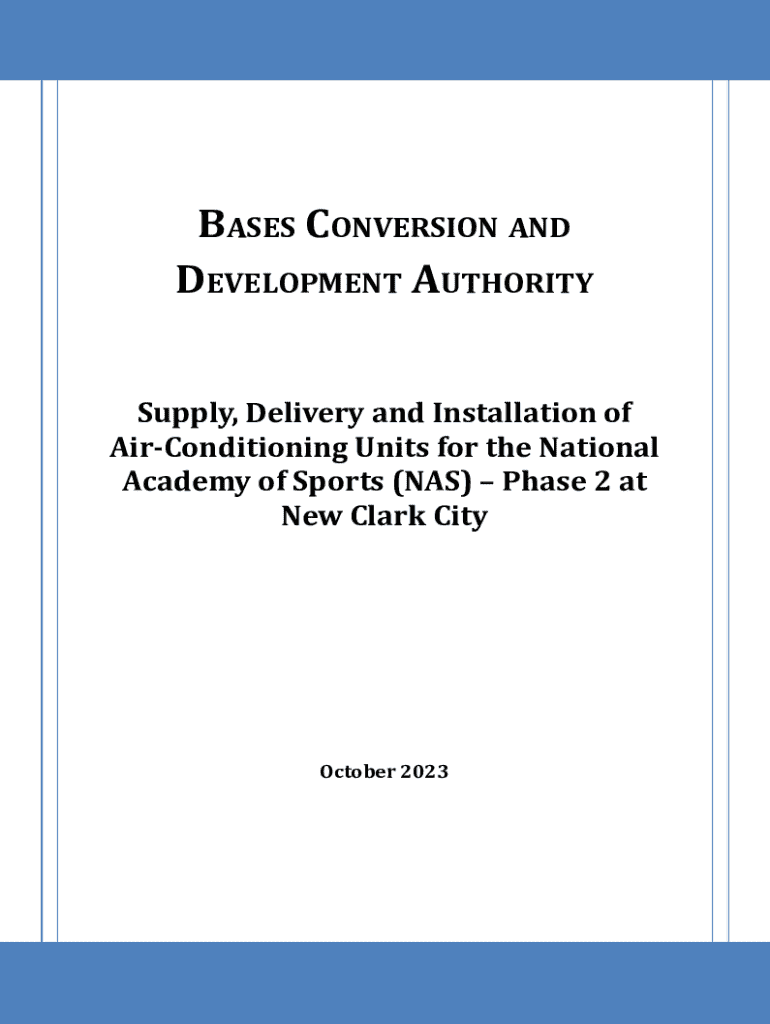 BASES CONVERSION AND DEVELOPMENT AUTHORITY Supply, Delivery and Installation of AirConditioning Units for the National Academy of Sports (NAS) Phase 2 at New Clark CityOctober 20230Table of Contents