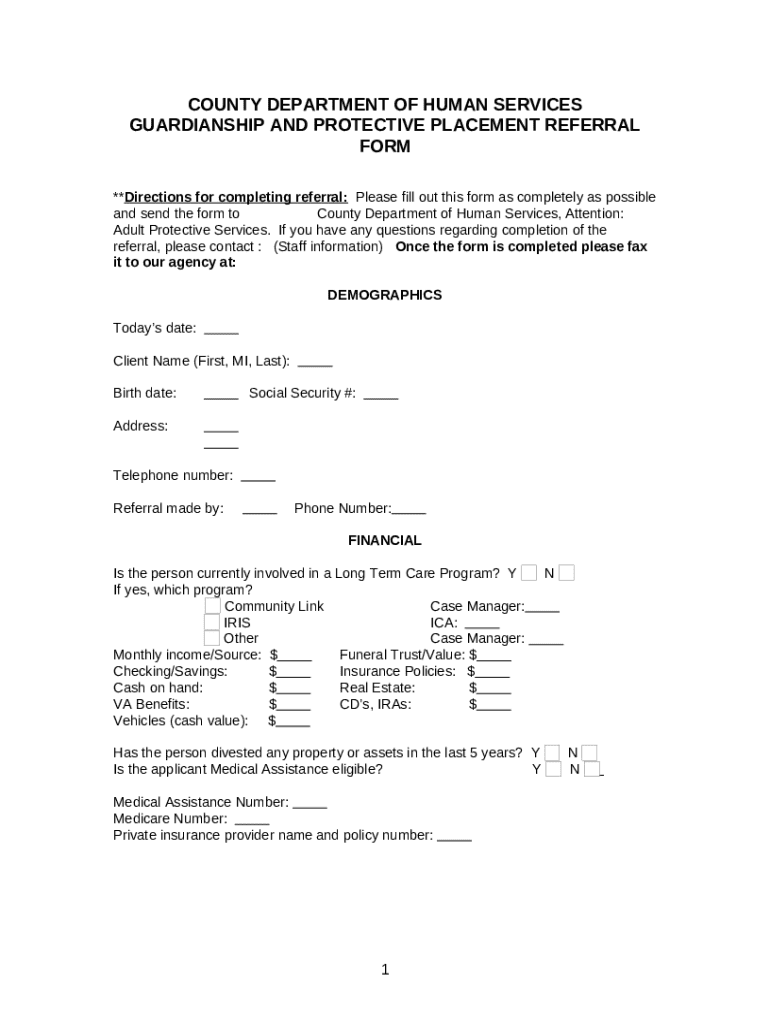 What is GUARDIANSHIP AND PROTECTIVE PLACEMENT REFERRAL Form?