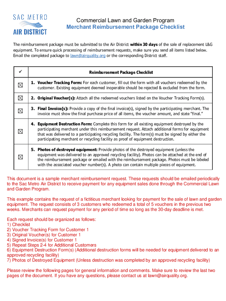 Commercial Lawn and Garden Program Merchant Reimbursement Package Checklist The reimbursement package must be submitted to the Air District within 30 days of the sale of replacement L&G equipment.