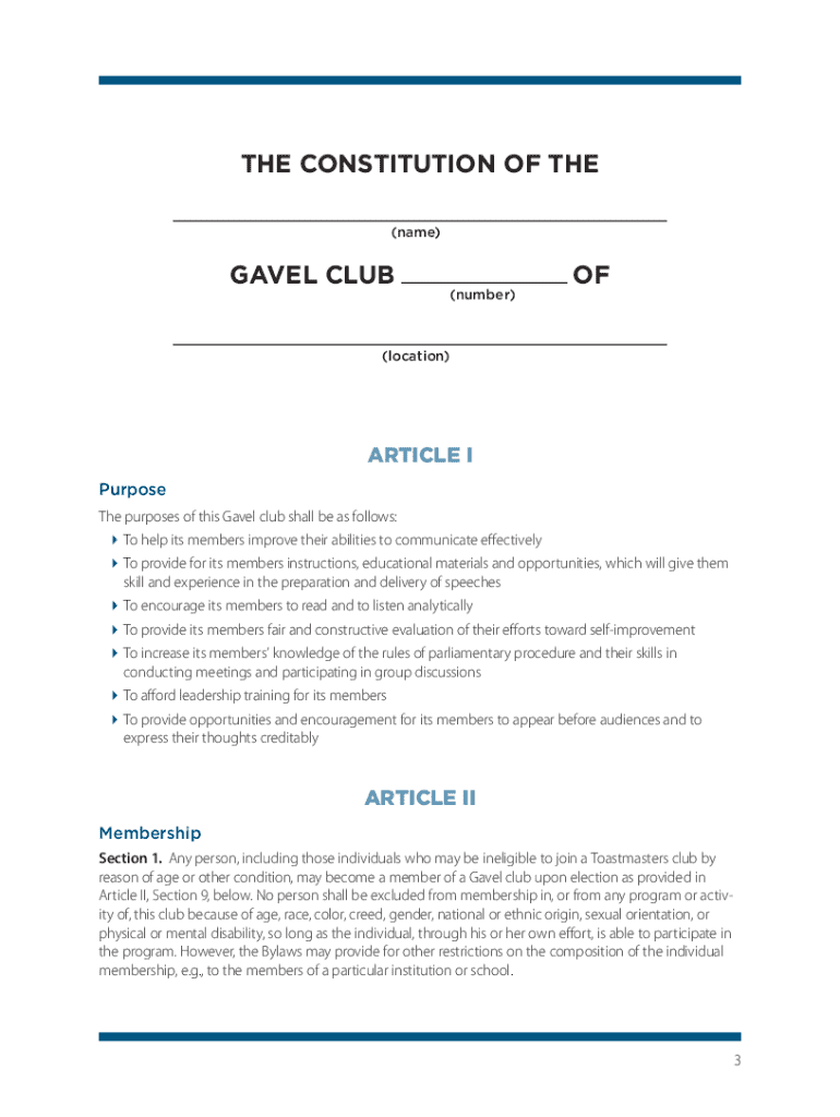 Get the free Bylaws of Toastmasters International and Club Constitution ...