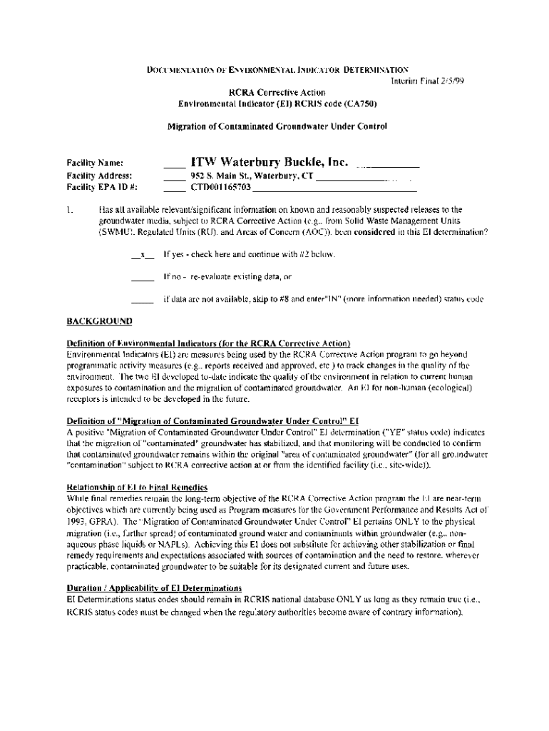 DOCUMENTATION OF ENVIRONMENTAL INDICATOR DETERMINATION Interim Final 2/5/99 RCRA Corrective Action Environmental Indicator (El) RCRIS code (CA750) Migration of Contaminated Groundwater Under ControlFacility