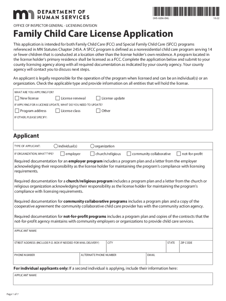 DHS8206ENG1022OFFICE OF INSPECTOR GENERAL LICENSING DIVISIONFamily Child Care License Application This application is intended for both Family Child Care (FCC) and Special Family Child Care (SFCC)
