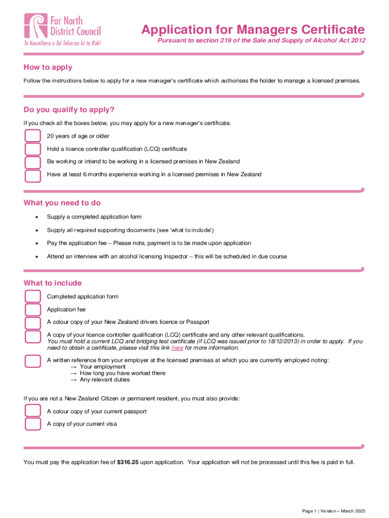 Pursuant to section 219 of the Sale and Supply of Alcohol Act 2012How to apply