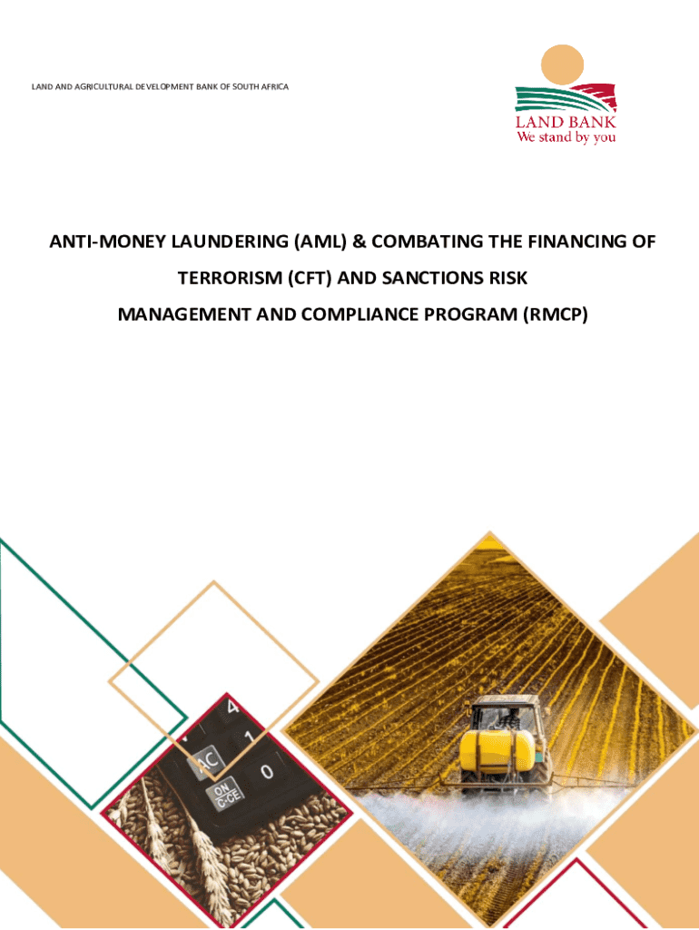 LAND AND AGRICULTURAL DEVELOPMENT BANK OF SOUTH AFRICAANTIMONEY LAUNDERING (AML) & COMBATING THE FINANCING OF TERRORISM (CFT) AND SANCTIONS RISK MANAGEMENT AND COMPLIANCE PROGRAM (RCMP)LAND AND AGRICULTURAL