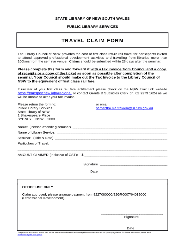 Template Travel Claim - Public Library Services. public library services; travel claim s instructions