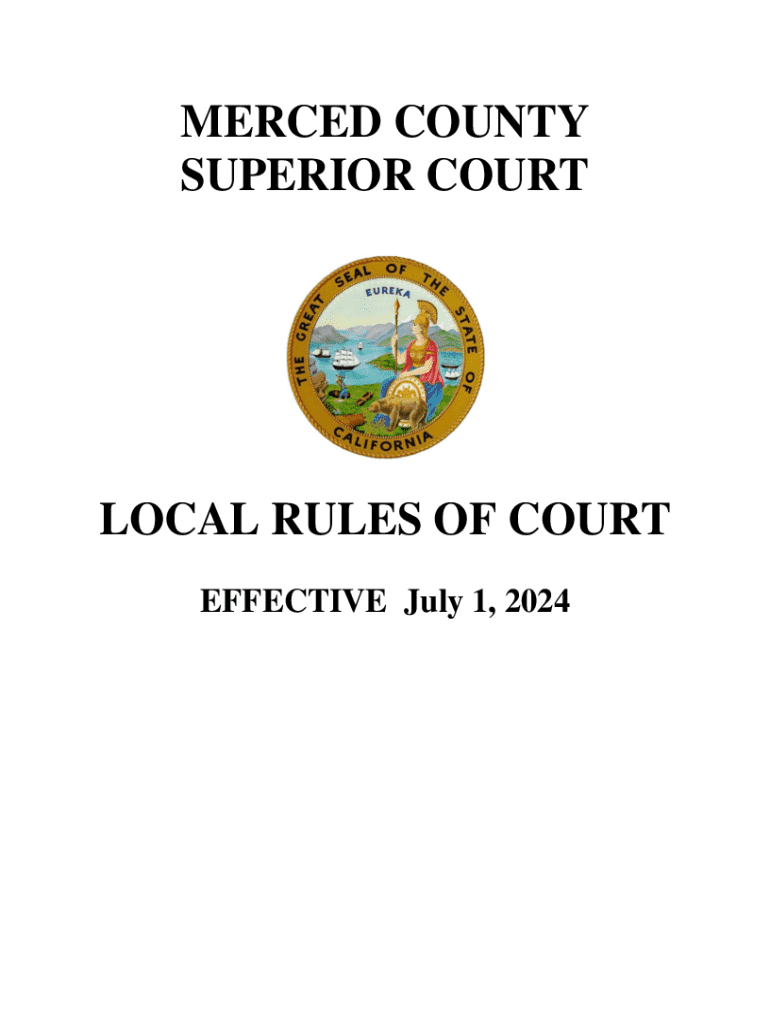 MERCED COUNTY SUPERIOR CORTICAL RULES OF COURT EFFECTIVE July 1, 2024Merced Superior Court Superior Court of California, County of Merced Judges of the Superior Court Hon. Carol K. Ash Hon. Mark V.
