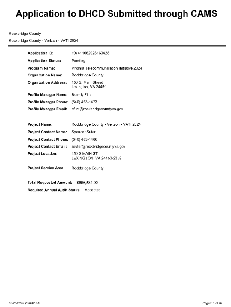 Application ID:107411062023160428Application Status:PendingProgram Name:Virginia Telecommunication Initiative 2024Organization