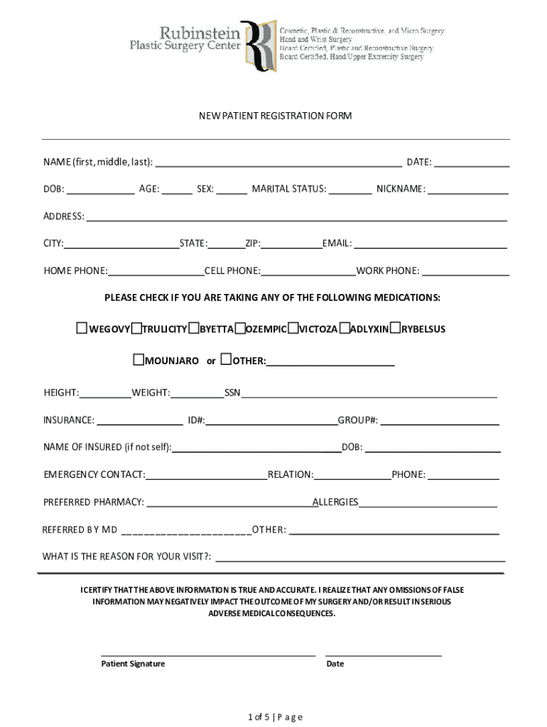 NEW PATIENT REGISTRATION FORMNAME (first, middle, last): DOB:DATE:AGE:SEX:MARITAL STATUS:NICKNAME:ADDRESS: CITY:STATE:HOME PHONE:ZIP:EMAIL:CELL PHONE:WORK PHONE:PLEASE CHECK IF YOU ARE TAKING ANY