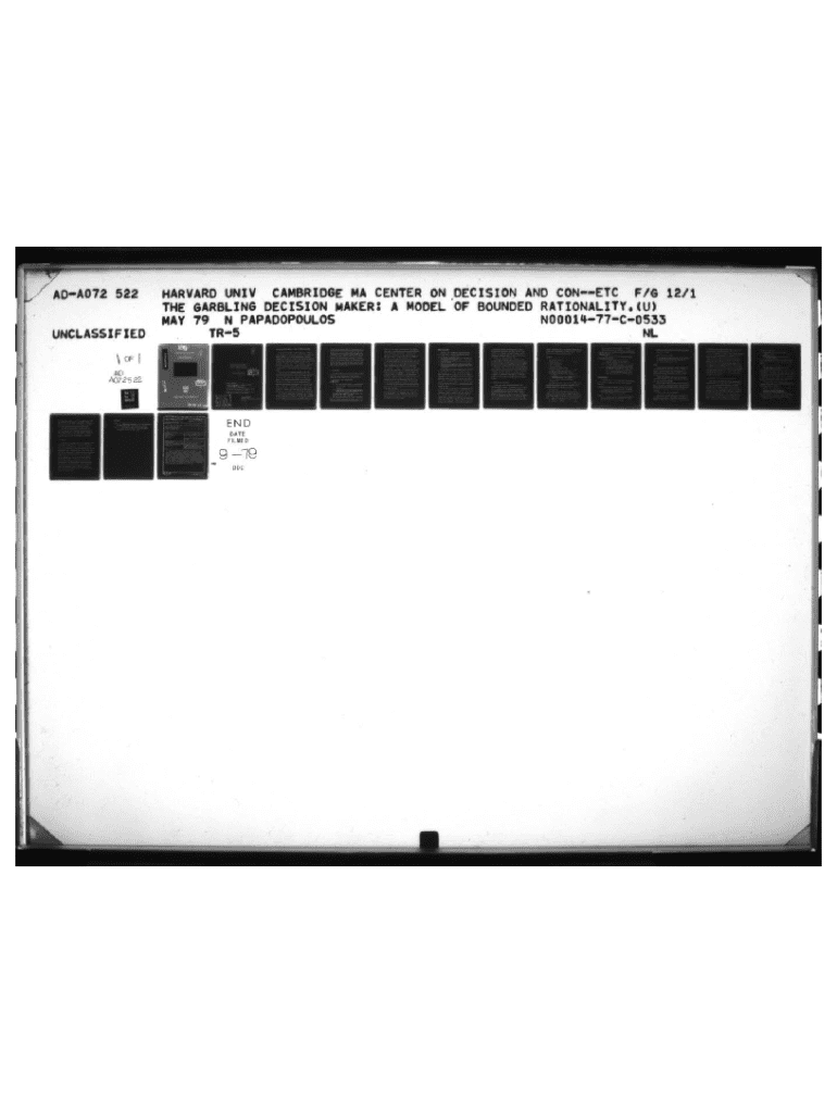 ADA072 522 UNCLASSIFIEDHARVARD UNIV CAMBRIDGE MA CENTER ON DECISION AND CONE TC FIG 12/1 THE GARBLING DECISION MAKER: * MODEL OF BOUNDED RATIONALITY. (U) MAY 79 N PAPADOPOULOS fl Stirs I1.0 ii l 3