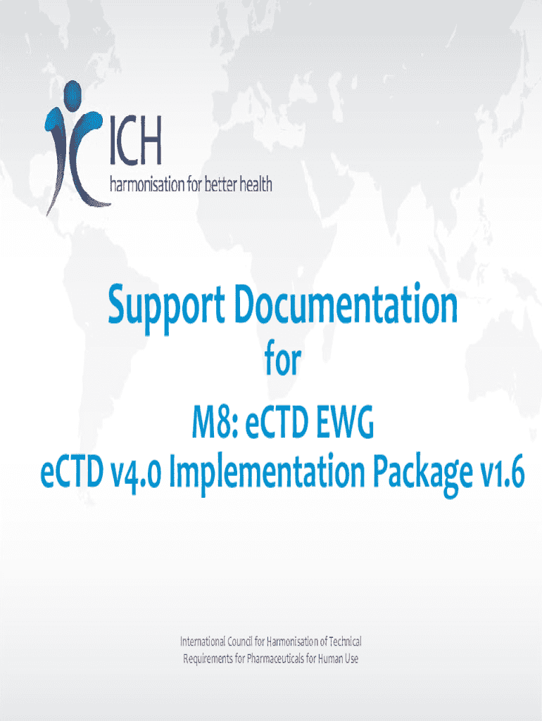 Support Documentation for M8: ECTD EWG ECTD v4.0 Implementation Package v1.6International Council for Harmonization of Technical Requirements for Pharmaceuticals for Human Use 1eCTD v4.0 Support DocumentationLegal