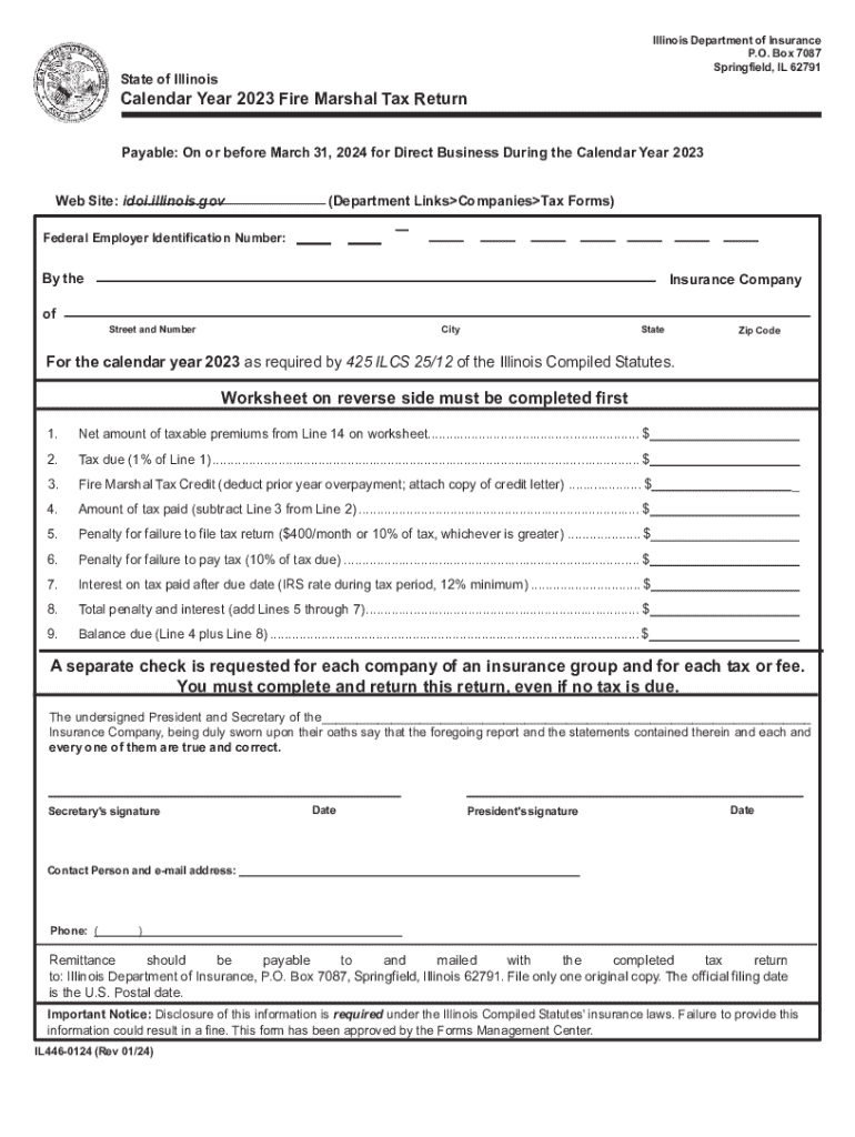 Springfield, IL 62791State of IllinoisCalendar Year 2023 Fire Marshal Tax Return