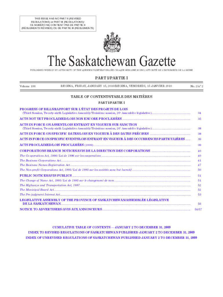 (ELEMENTS RV ISS) OF DE PARTIES III (ELEMENTS)The Saskatchewan GazettePUBLISHED WEEKLY