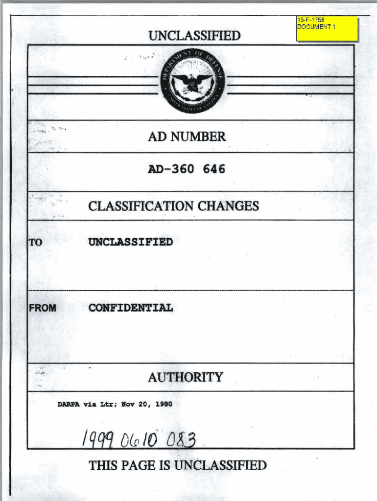 15F 1758 DOCUMENT 1UNCLASSIFIED ... z . .... AD NUMBER.. AAD360 646CLASSIFICATION CHANGES TOUNCLASSIFIEDFROMCONFIDENTIAL.,,;.;,:..,,..AUTHORITY DARPA via Ltr; Rov 20, 1980THIS PAGE IS UNCLASSIFIEDUNCLASSIFIED