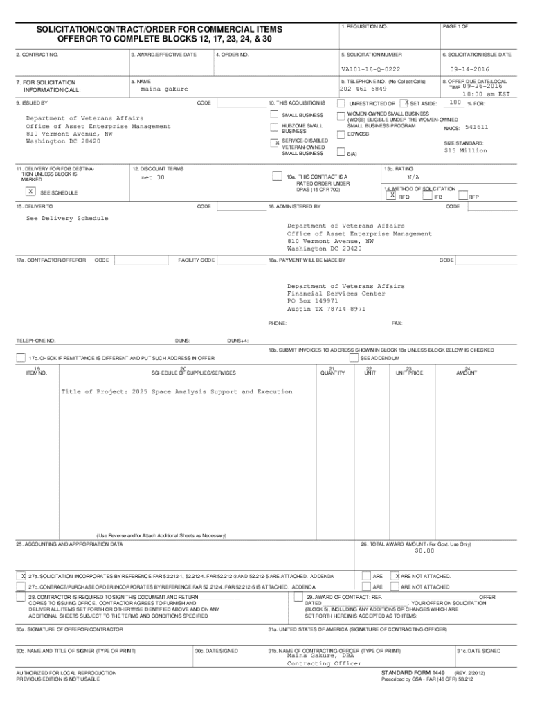 SOLICITATION/CONTRACT/ORDER FOR COMMERCIAL ITEMS OFFER OR TO COMPLETE BLOCKS 12, 17, 23, 24, & 30 2. CONTRACT NO.3. AWARD/EFFECTIVE DATE4. ORDER NO.1. REQUISITION NO.PAGE 1 OF5. SOLICITATION NUMBER6.