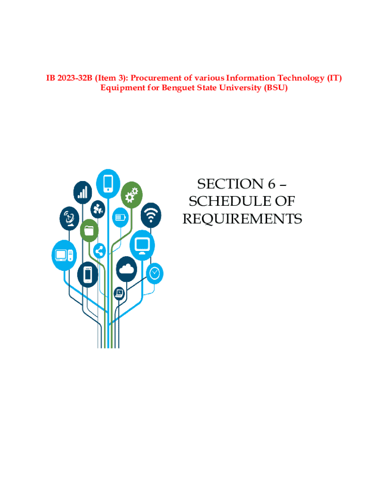 IB 202332B (Item 3): Procurement of various Information Technology (IT) Equipment for Banquet State University (BSU)SECTION 6 SCHEDULE OF Requirements delivery schedule expressed as weeks/months stipulates