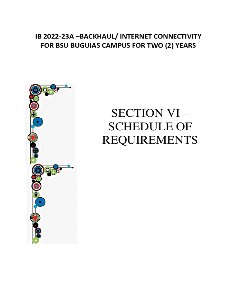 IB 202223A BACKHAND/ INTERNET CONNECTIVITY FOR BSU BUGGIES CAMPUS FOR TWO (2) REASSERTION VI SCHEDULE OF REQUIREMENT SIB 202223A BACKHAND/ INTERNET CONNECTIVITY FOR BSU BUGGIES CAMPUS FOR TWO (2)