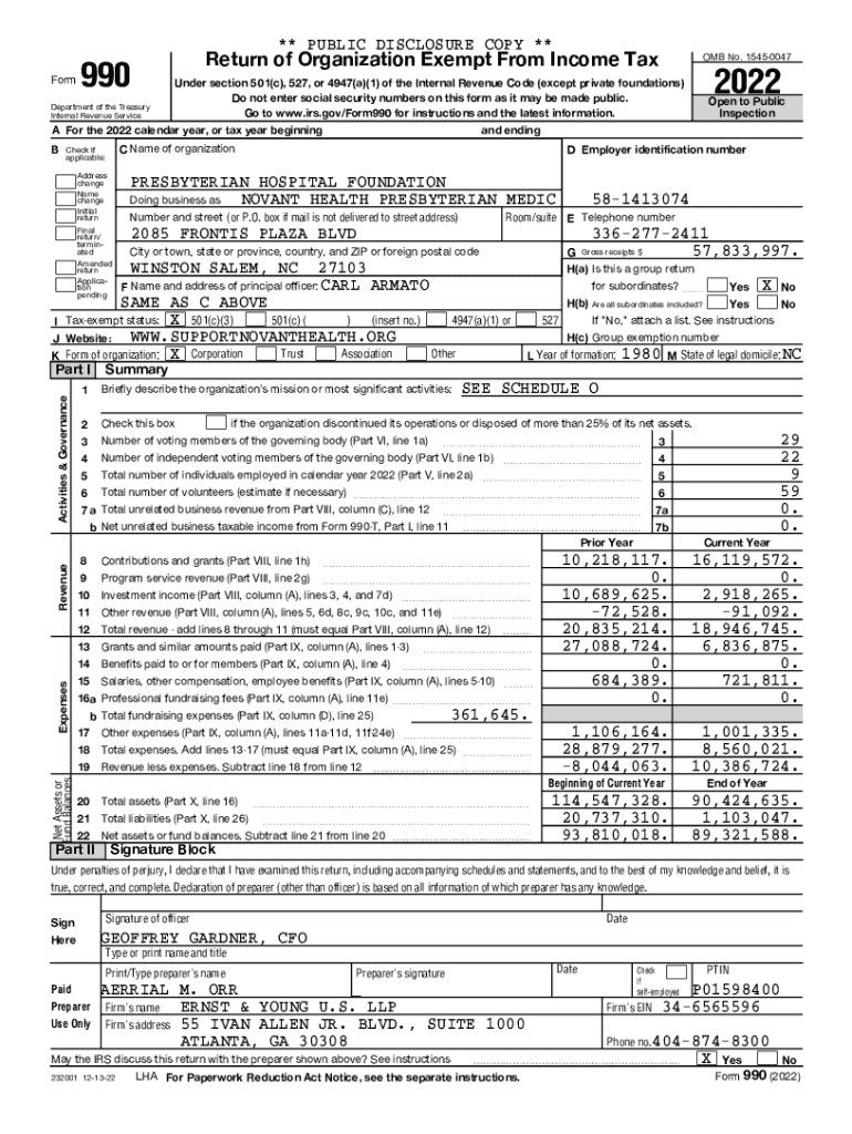 ** PUBLIC DISCLOSURE COPY **FormReturn of Organization Exempt From Income Tax990Department of the Treasury Internal Revenue ServiceD Employer identification numberPRESBYTERIAN HOSPITAL FOUNDATION