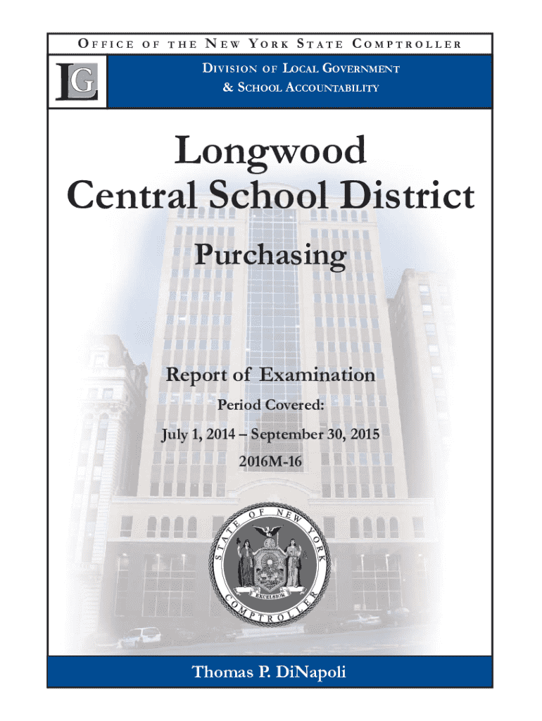 OFFICE THEN EW YORK STATE COMPTROLLER DI VISION OF LOCAL GOVERNMENT & SCHOOL ACCOUNTABILITYLongwood Central School District PurchasingReport of Examination Period Covered: July 1, 2014, September