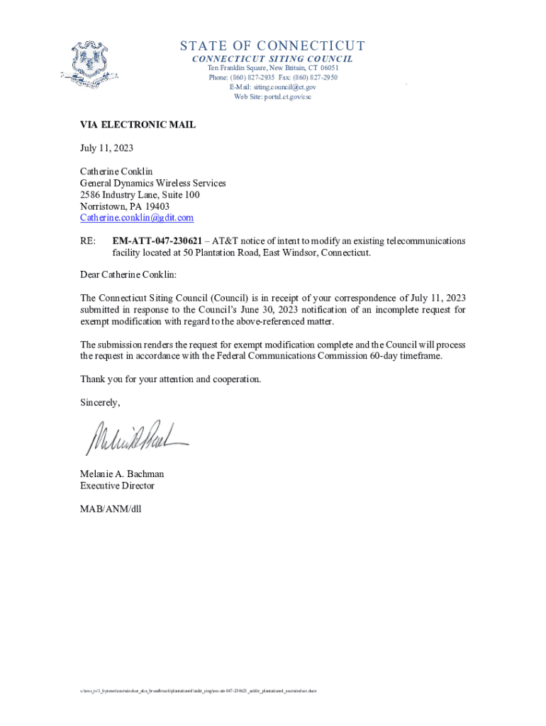 S TA TE OF CON NE CTI CU T CO IN E C TI C UT S IT IN G CO UN C IL Ten Franklin Square, New Britain, CT 06051 Phone: (860) 8272935 Fax: (860) 8272950 Email: siting.council@ct.gov Website: portal.ct.gov/cscVIA