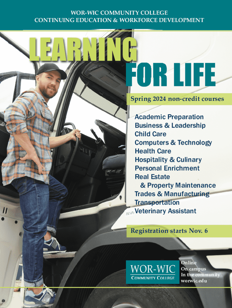 NORWICH COMMUNITY COLLEGE CONTINUING EDUCATION & WORKFORCE DEVELOPMENTLEARNING FOR LIFE Spring 2024 noncredit coursesAcademic Preparation Business & Leadership Child Care Computers & Technology Health