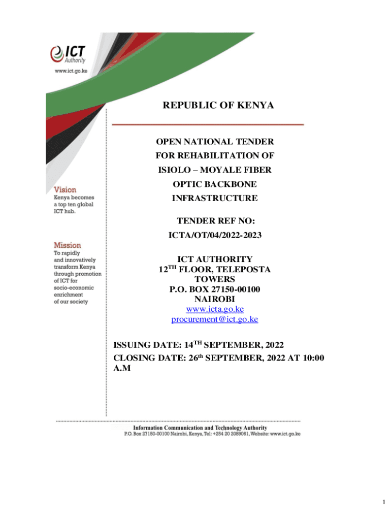 REPUBLIC OF KENYAN NATIONAL TENDER