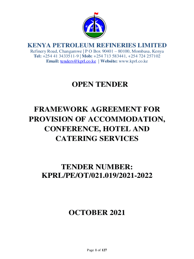 KPRLKENYA PETROLEUM REFINERIES LIMITED Refinery Road, Changamwe | P O Box 90401 80100, Mombasa, Kenya Tel: +254 41 34335119 | Mob: +254 713 583441, +254 724 257102 Email: tenders@kprl.co.ke | Website:
