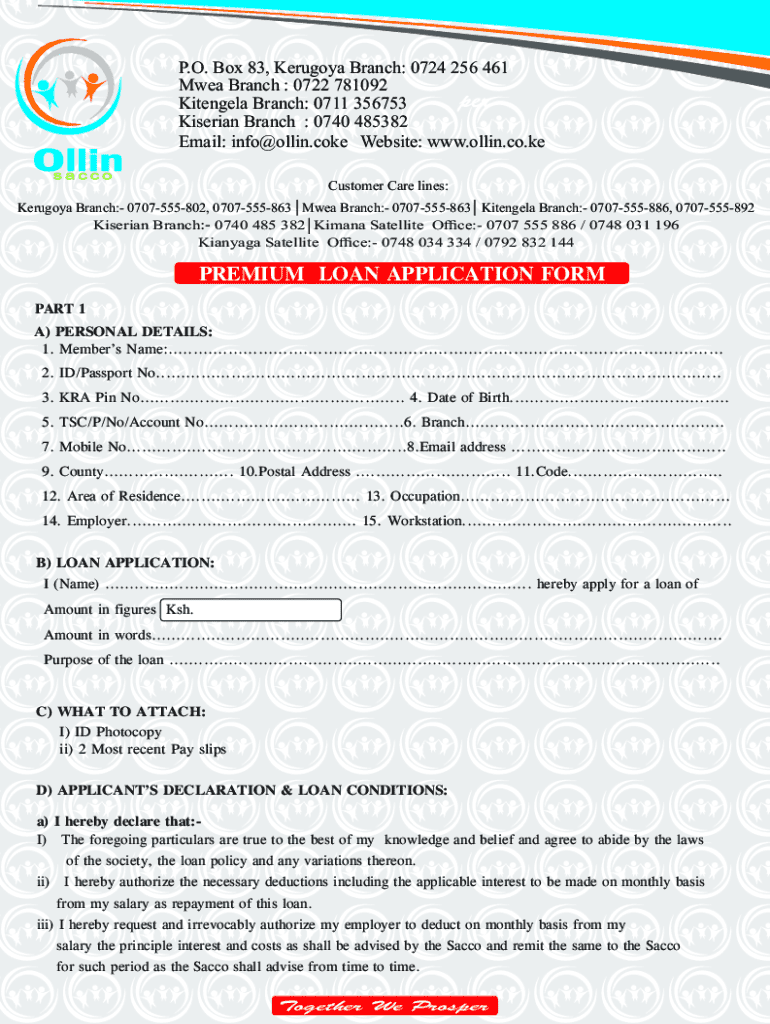 Get the free Premium Loan Application Form