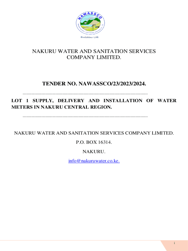NAURU WATER AND SANITATION SERVICES COMPANY LIMITED.TENDER NO. NABISCO/23/2023/2024. ___LOT 1 SUPPLY, DELIVERY AND INSTALLATION OF WATER METERS IN NAURU CENTRAL REGION. ___NAURU WATER AND SANITATION