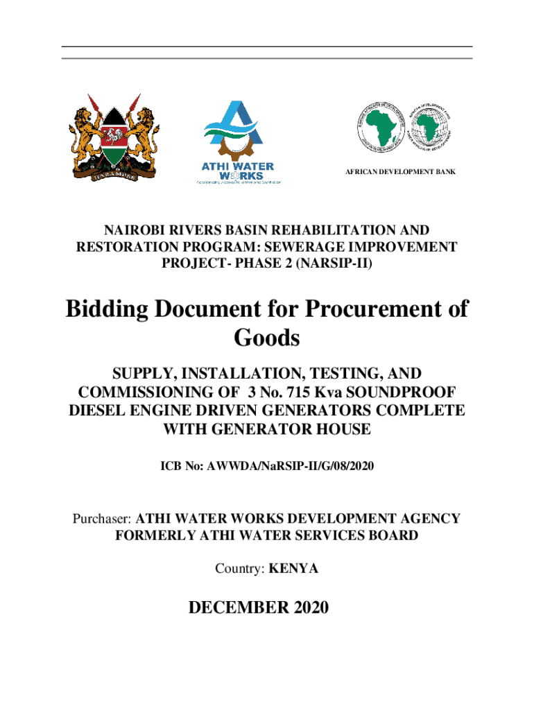 AFRICAN DEVELOPMENT BANKNAIROBI RIVERS BASIN REHABILITATION AND RESTORATION PROGRAM: SEWERAGE IMPROVEMENT PROJECT PHASE 2 (NARSIPII)Bidding Document for Procurement of Goods SUPPLY, INSTALLATION,