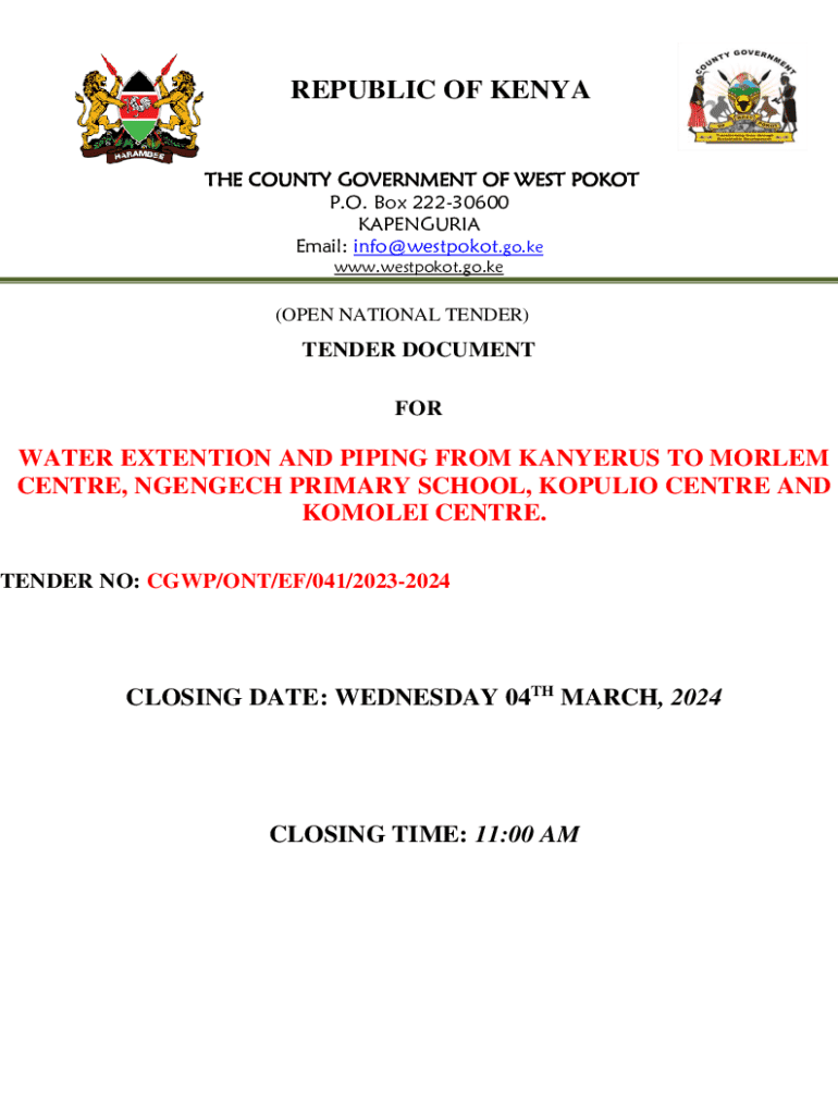 www.westpokot.go.ke(OPEN NATIONAL TENDER)TENDER DOCUMENT